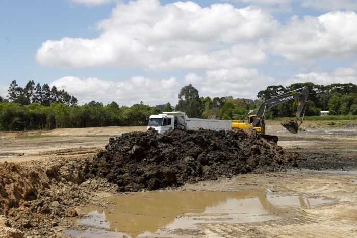 Os trabalhos avançaram com a escavação da primeira bacia de contenção e o início das estruturas de controle responsáveis pela entrada e saída da água, implantação dos caminhos de serviço para permitir o acesso e o deslocamento seguro das máquinas e equipamentos pesados usados na obra e da limpeza e preparação do terreno onde será implantada a segunda bacia de contenção.